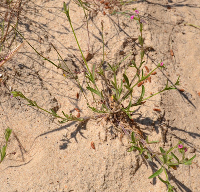 Erva anual, sedosa, com caules erectos, simples ou ramificados desde a base, com 20 a 40 cm; folhas inferiores subespatuladas; as caulinares de oblanceoladas a lineares; flores pentâmeras com corola rosada, dispostas em inflorescências monocasiais lassas.